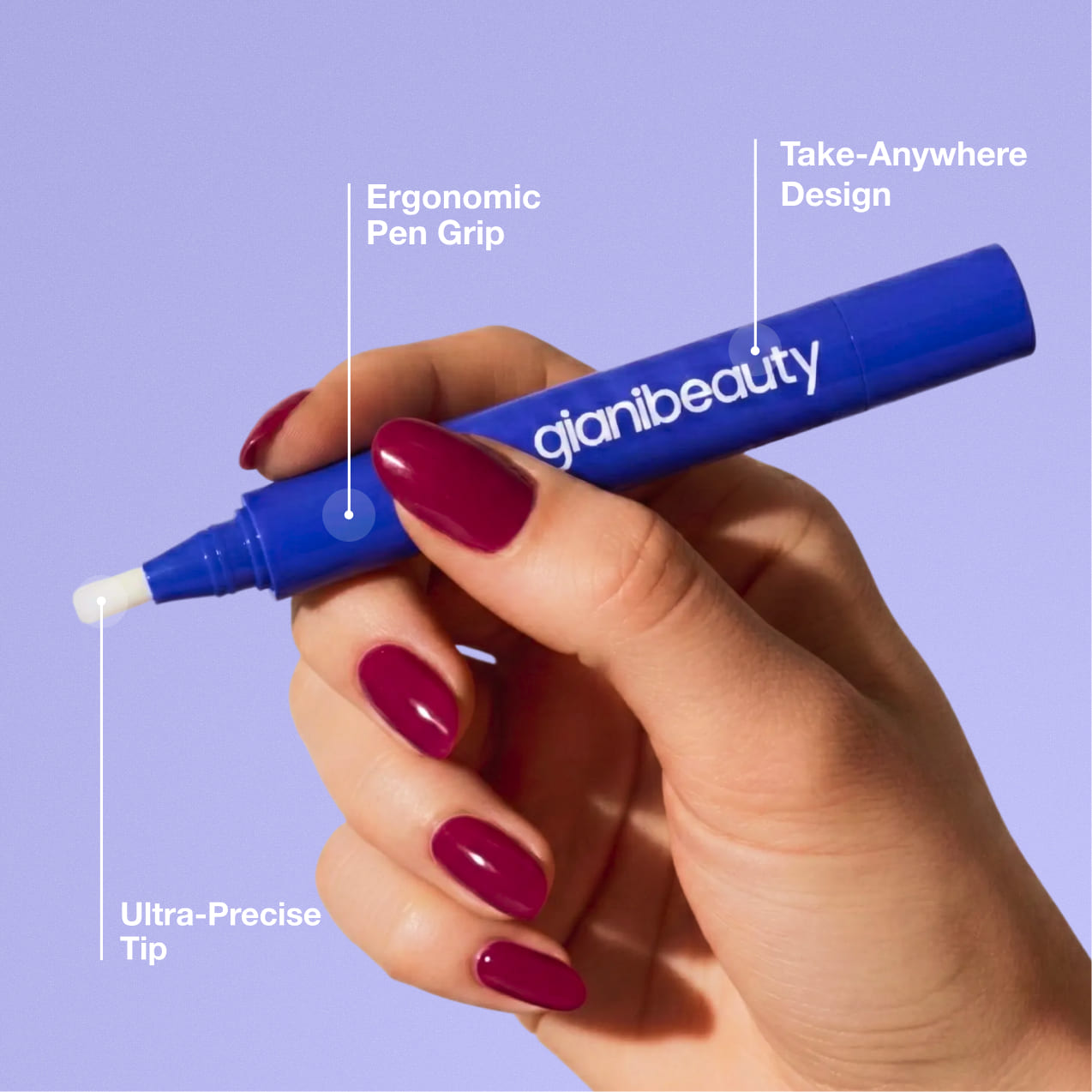Giani applies like a precise marker, dries in 60 seconds, lasts up to 4 weeks without chipping, and has zero chemical smell.